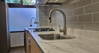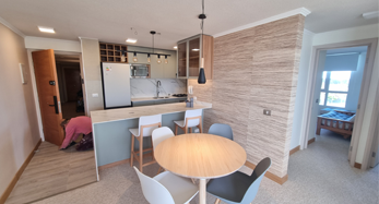 El diseño interior se inspiró en un estilo costero moderno, con una paleta de colores suaves que mezcla blancos, arenas y tonos piedra, generando una atmósfera cálida y relajante. La cocina fue rediseñada con mobiliario de líneas limpias, cubiertas de cuarzo y detalles en madera clara, logrando una estética contemporánea sin perder funcionalidad.